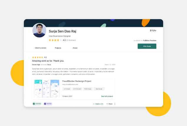 Your profile is your most valuable resource. Clients browse your profile when deciding who to work with on a project, so it’s essential that you present yourself in the best way possible. Personalise your profile by sharing your career experience, define your skills and tell your own story. Show examples of your work in your portfolio, be descriptive and keep your profile up-to-date.